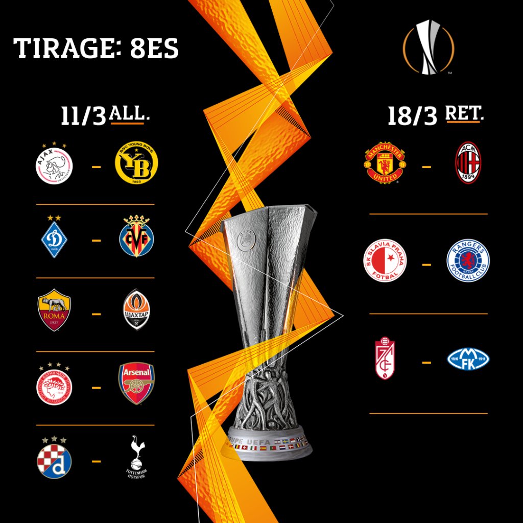 أسفرت قرعة ربع نهائي الدوري الأوروبي عن مواجهات ساخنة ومتكافئة مع قمة إنجليزية إسبانية بين مانشستر يونايتد وغرناطة وأخرى إيطالية هولندية بين روما وأياكس.